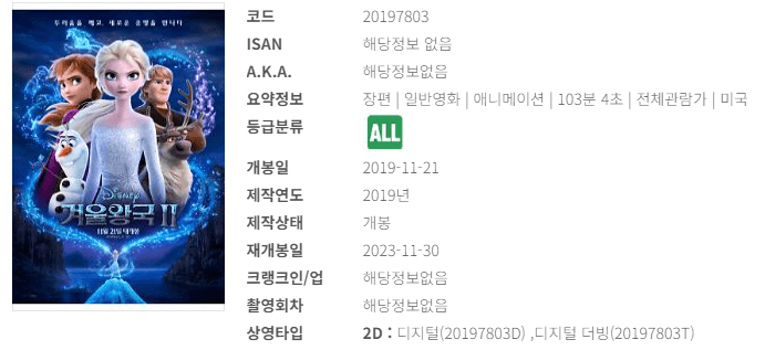 | 2 | 겨울왕국 2 | 13,768,797 | 115,033,955,041 | 2,648 | 2019-11-21 |