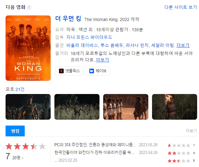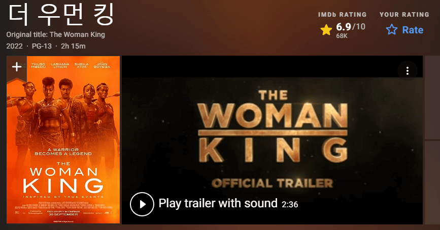 오늘 영화 포스팅은 현재 넷플릭스에서 핫하게 1위를 질주하고 있는 '더 우먼 킹'에 대해서 알아보겠습니다.