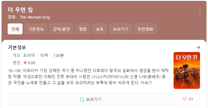 이름과 포스터에서도 알 수 있듯이 여전사 부대의 이야기라는 것을 알 수 있습니다. '더 우먼 킹'은 17~19세기 실존했던 다호메이 왕국의 여전사 부대를 모티브로 만든 영화입니다.