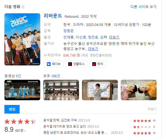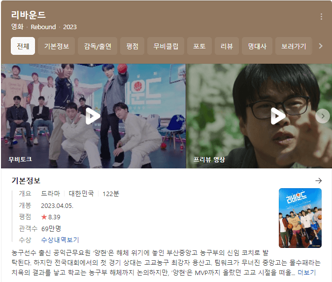 청춘들의 좌충우돌 감동을 느껴보고 싶으시다면 영화 리바운드를 강력히 추천해 드립니다.
