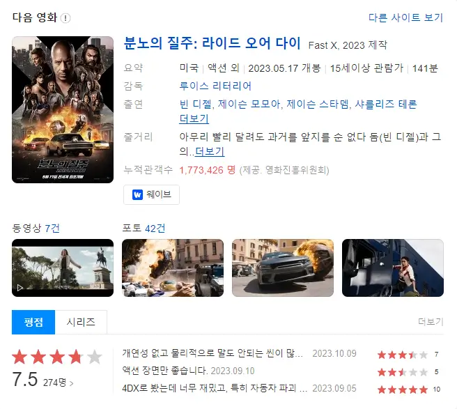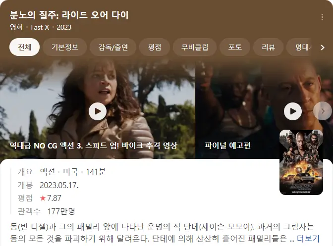 분노의 질주 : 라이드 오어 다이 네이버영화 평점 : 7.87