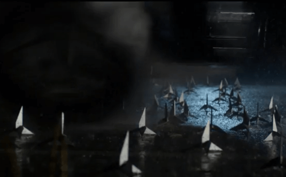 보안관은 그녀를 안전한 장소로 이동시키려 하지만, 불안한 표정으로 주위를 경계합니다. 갑자기 도로에 스파이크 스트립(자동차 타이어를 펑크 내는 장치)이 깔려 있어, 차가 급정거합니다. 보안관은 급히 조미에게 차에서 나가지말고 숨어 있으라고 지시한 뒤 차에서 내려 상황을 살핍니다.