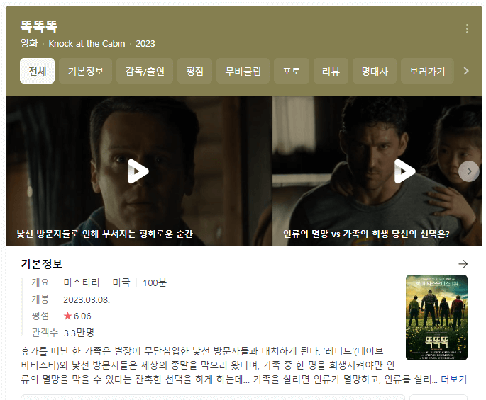 영화 똑똑똑 네이버 영화 평점 : 6.06