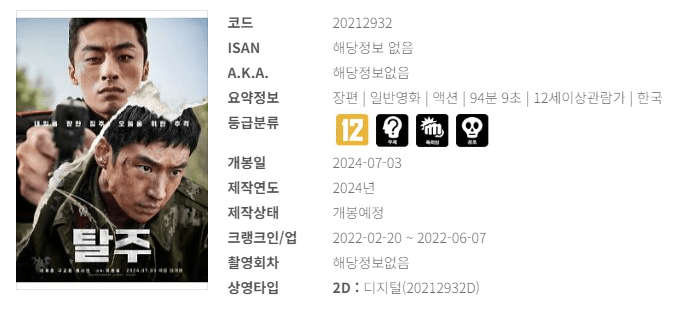 | 4 | 탈주 | 44,818 | 482,388,638 | 10.8 | 2024-07-03 |