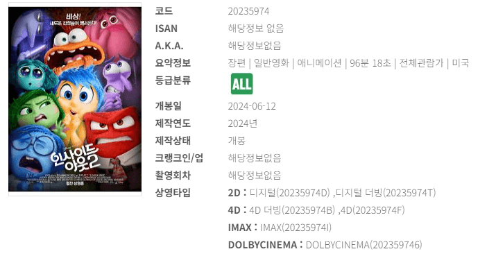 | 1 | 인사이드 아웃 2 | 171,058 | 1,632,337,513 | 41.3 | 2024-06-12 |