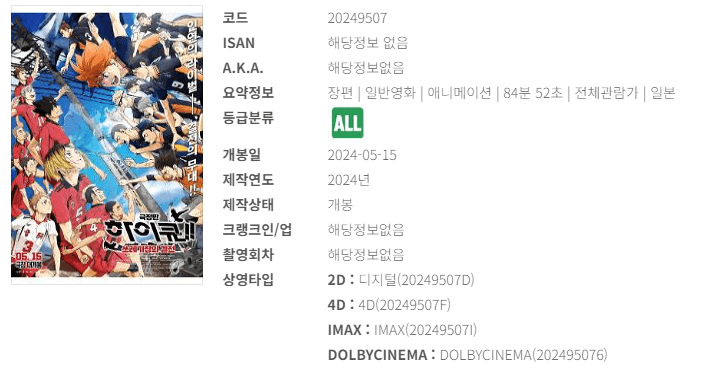 | 6 | 극장판 하이큐!! 쓰레기장의 결전 | 4,377 | 44,478,177 | 1.1 | 2024-05-15 |