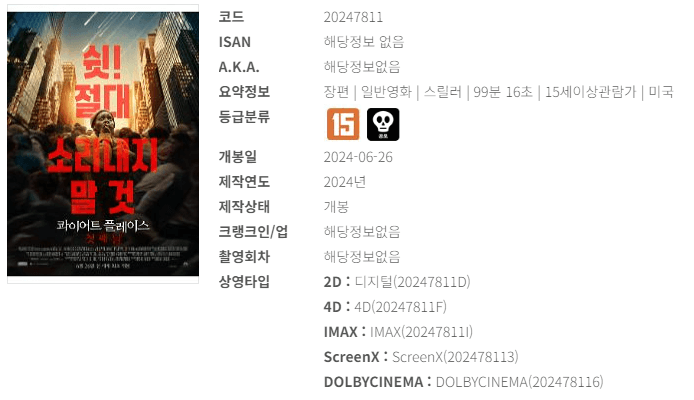 | 2 | 콰이어트 플레이스: 첫째 날 | 50,493 | 519,514,207 | 12.2 | 2024-06-26 |