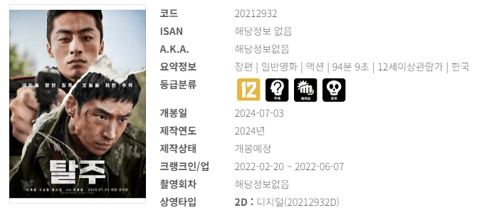 | 3 | 탈주 | 42,330 | 86,607,000 | 7.7 | 2024-07-03 |