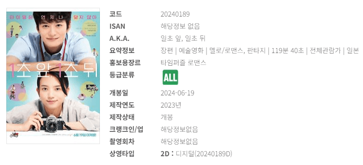 영화 예매순위 : 10위 1초 앞, 1초 뒤