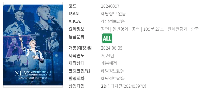 | 8 | 김준수 콘서트 무비 챕터 원 : 레크리에이션 | 6,179 | 142,077,000 | 3.1 | 2024-06-05 |
