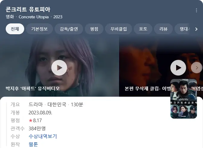 콘크리트 유토피아 네이버 영화 평점 : 8.17